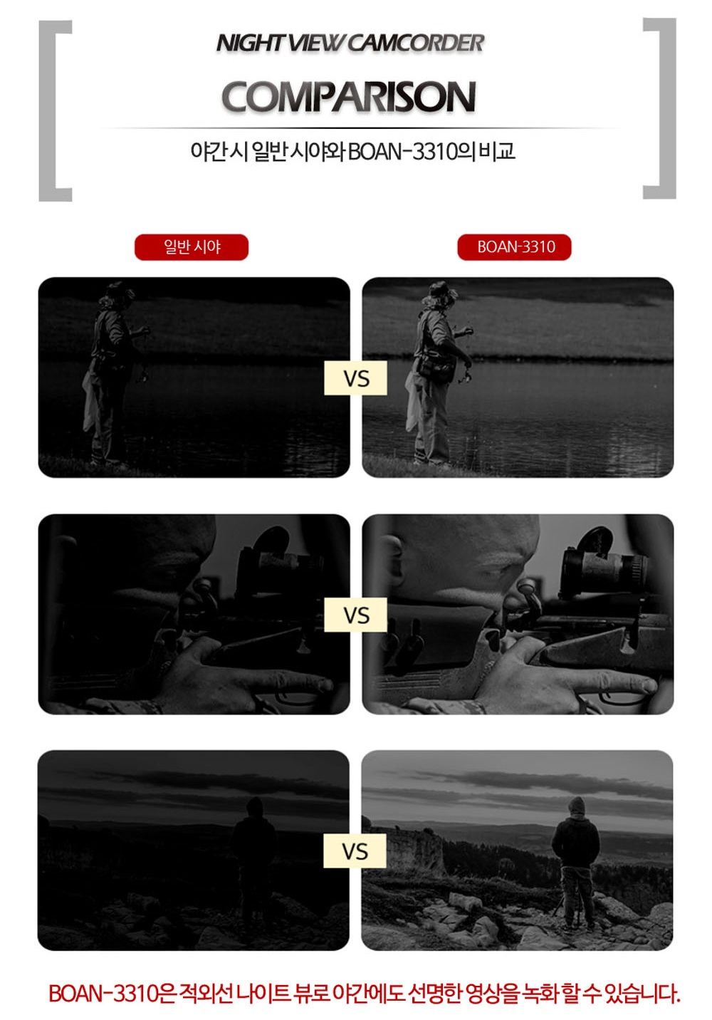 BOAN-3310은 적외선 야간 촬영 기능을 탑재해 완전히 어두운 환경에서도 안정적인 영상을 제공합니다.