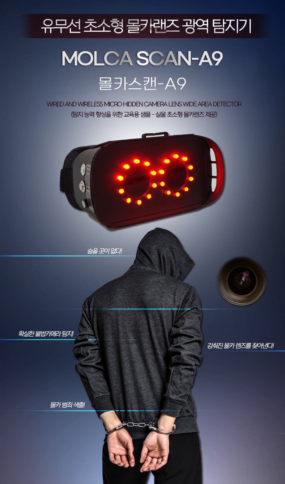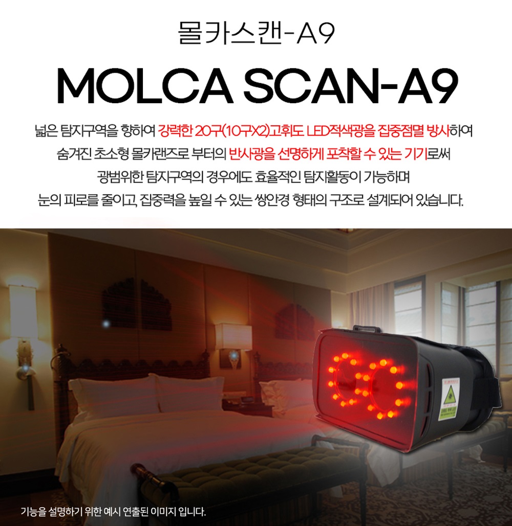 Molca Scan A9 몰래카메라탐지기 유/무선 초소형 몰카 광역 탐지기 | 호신캠-초소형카메라ㅣ초소형캠코더ㅣCCTV 전문점 관공서 대량납품장비 - 유/무선 몰래카멜라탐지기, 카메라 렌즈와 실시간 카